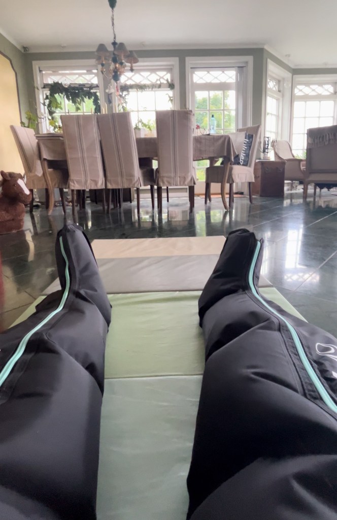 För några veckor sedan beställde jag hem ett par pneumatiska kompressions-boots i hopp om att det skulle hjälpa mig med mina symptom. Jag hörde talas om dem i en podd (the POTScast) i början av sommaren, där de rekommenderades för patienter med POTS i syfte att hjälpa till med att lindra symptom och förebygga blodproppar.