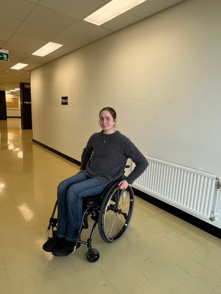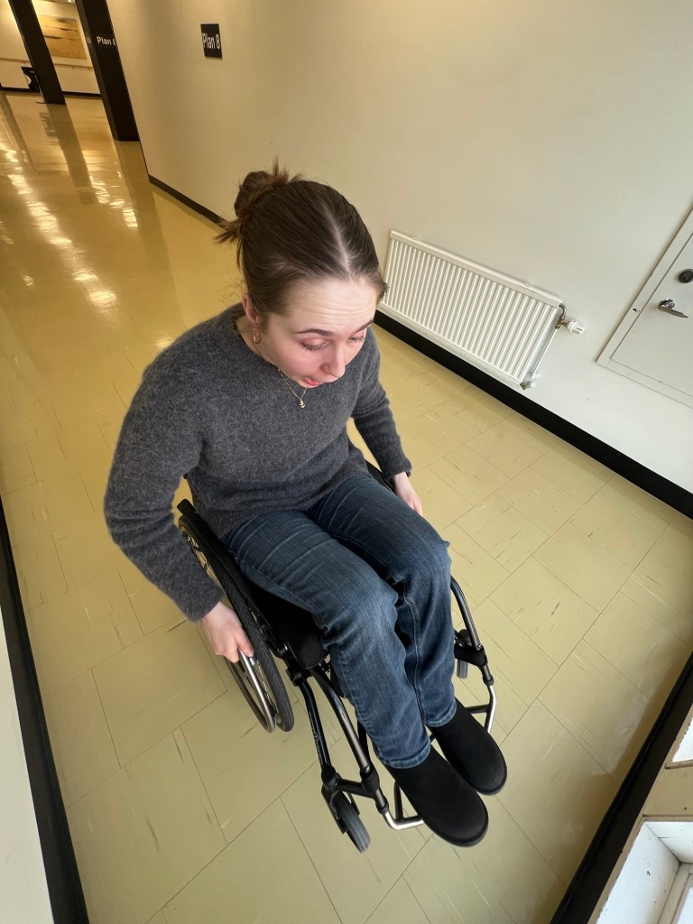 Något som har hjälpt mig något enormt är mina rörelsehjälpmedel, som gett mig mer frihet i min vardag och dragit ner på antalet kraschar. Utöver rullstol och rullator använder jag mig av en duschpall, en hög pall framför badrumsspegeln och en pall på hjul i köket. Jag har även en käpp för kortare sträckor och till platser där rullator och rullstol inte går att använda, samt mitt drivaggregat till rullstolen då jag blir för trött av att köra manuell rullstol själv.