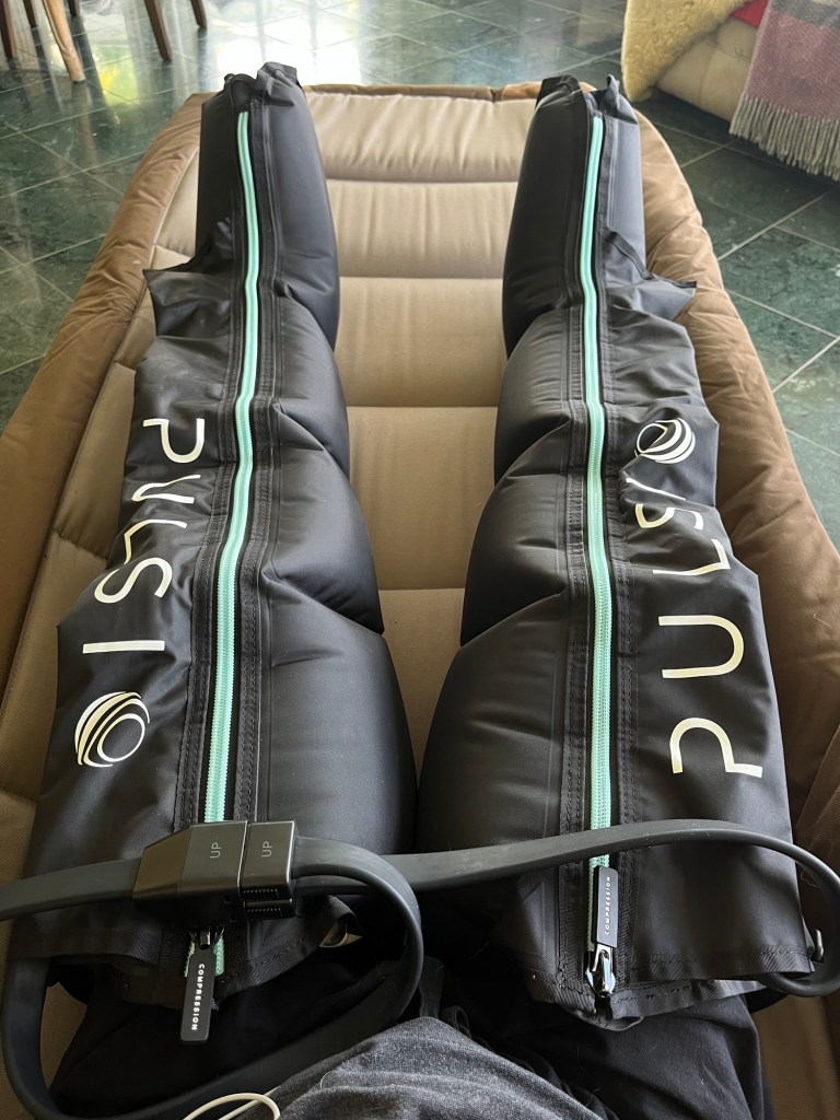 Ytterligare något som hjälpt min dåliga blodcirkulation är pneumatisk kompression, vilket fungerar med hjälp av lufttryck i syfte att stimulera blodcirkulationen. Mitt par är från Pulsio och har upp till 200 mmHg i kompression (vanliga kompressionsstrumpor har som sagt omkring 15 mmHg), vilket är extremt högt och betydligt mer än jag någonsin kommer att använda mig av. Jag använder mig av 100 mmHg inställt på programmet ”cirkulation” i 30 minuter morgon och kväll. Liksom med massage fick jag till en början väldigt ont i huvudet av att använda pneumatisk kompression, men får det inte längre. Mina ”bengrejer” har visserligen inte varit någon mirakelkur för min POTS, men har i princip helt tagit bort min smärta i benen. Innan jag började använda pneumatisk kompression brukade jag ligga vaken på nätterna och ha svårt att somna för att jag hade så ont i benen, något som jag helt blivit av med. Jag blir även varmare efter att ha använt mina bengrejer, vilket tyder på en förbättrad blodcirkulation. Det har tyvärr inte hjälpt mig med några fler av mina POTS-symtom, men med tanke på hur ont i benen jag brukade ha- och får direkt om jag inte använder mina ”bengrejer” på några dagar-, har de varit värdefulla för mig. De minskar även risken för blodproppar.