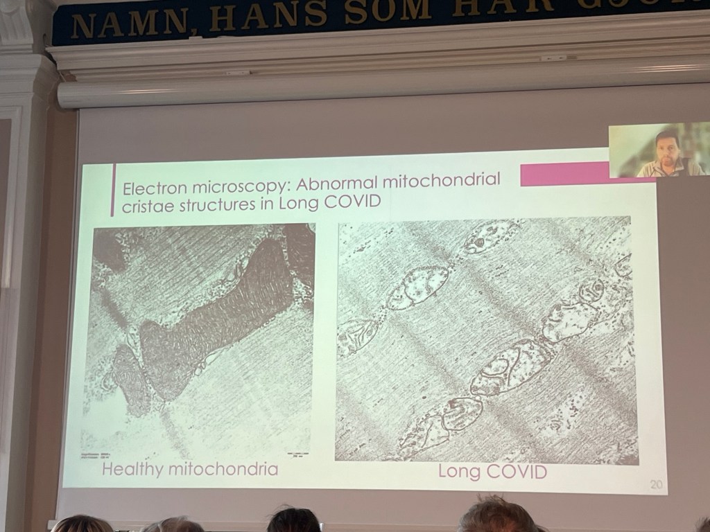 Nedan kommer jag att dela exempel på några av de avvikelser som presenterades under konferensen. Uppenbara fynd där man med egna ögon kan se de skillnader som finns i bland annat mitokondrier hos friska personer respektive patienter med Postcovid, ME/CFS och POTS.