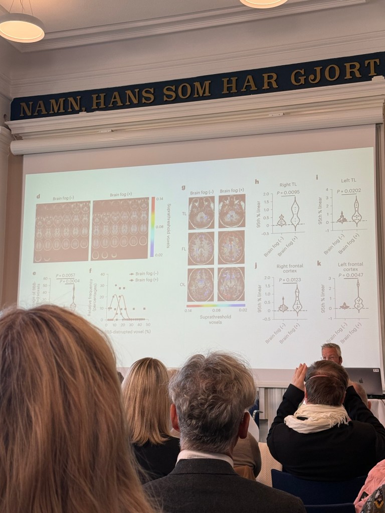 Det är verkligen otroligt att se hur långt forskningen har kommit och alla de biomarkörer och biologiska skillnader som hittats vid ME/CFS, Postcovid och POTS. Autonom dysfunktion, neuroinflammation, mikrovaskulär och endotel dysfunktion, nedsatt cerebralt blodflöde, hormonella förändringar, reducerad slagvolym, preload failure och mitokondriell dysfunktion är bara några exempel på biologiska avvikelser som förekommer hos dessa patienter. Man har bland annat kunnat identifiera hjärndimma med hjälp av magnetkamera, och en rad lovande kliniska prövningar är på gång.